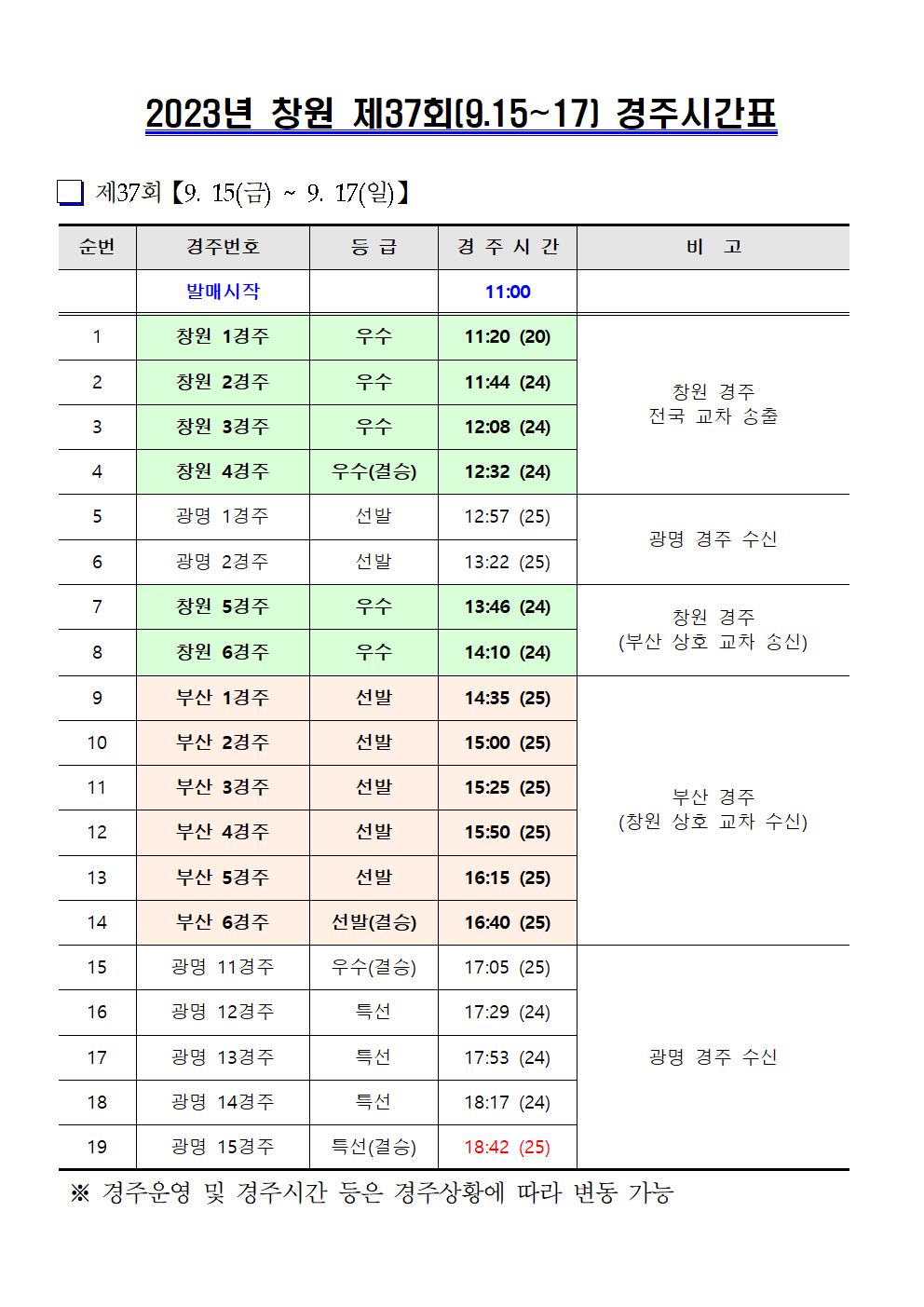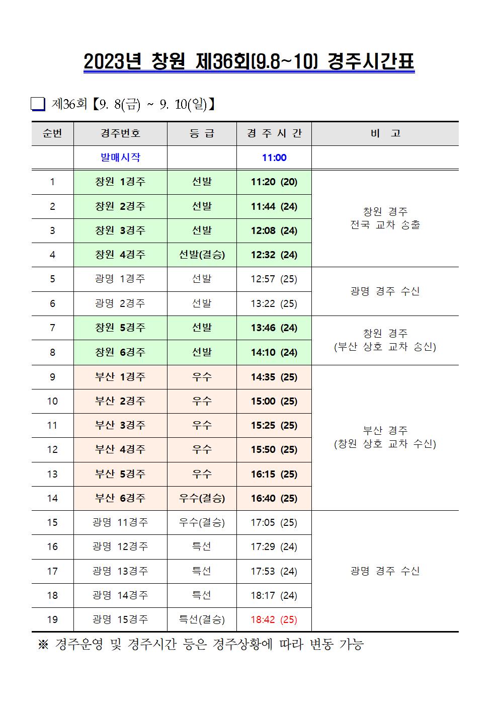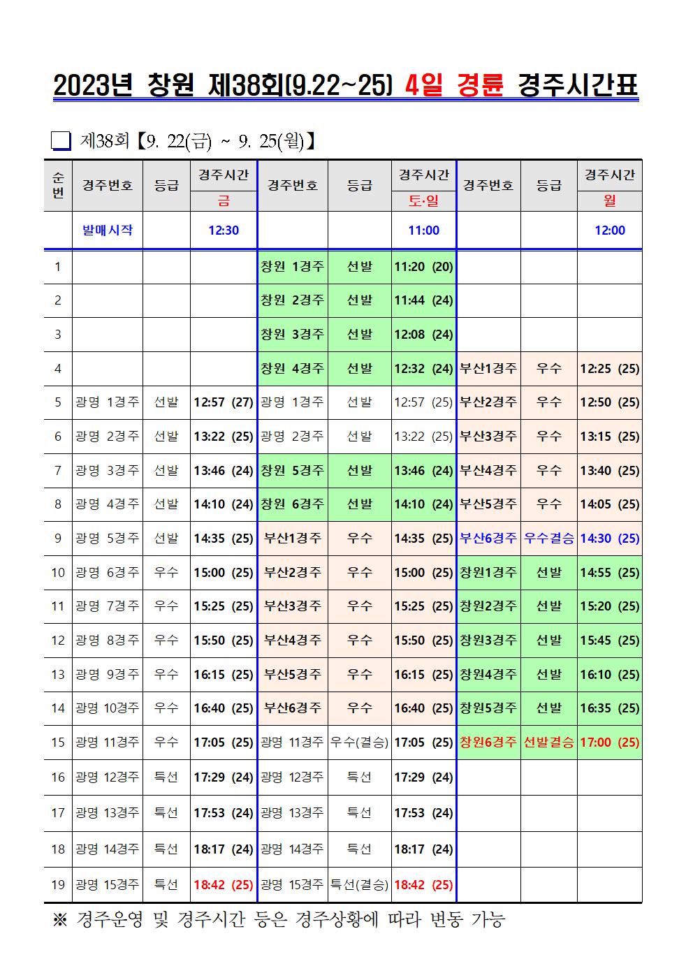 | 창원경륜 9월 경주운영 및 시간표 안내 | |