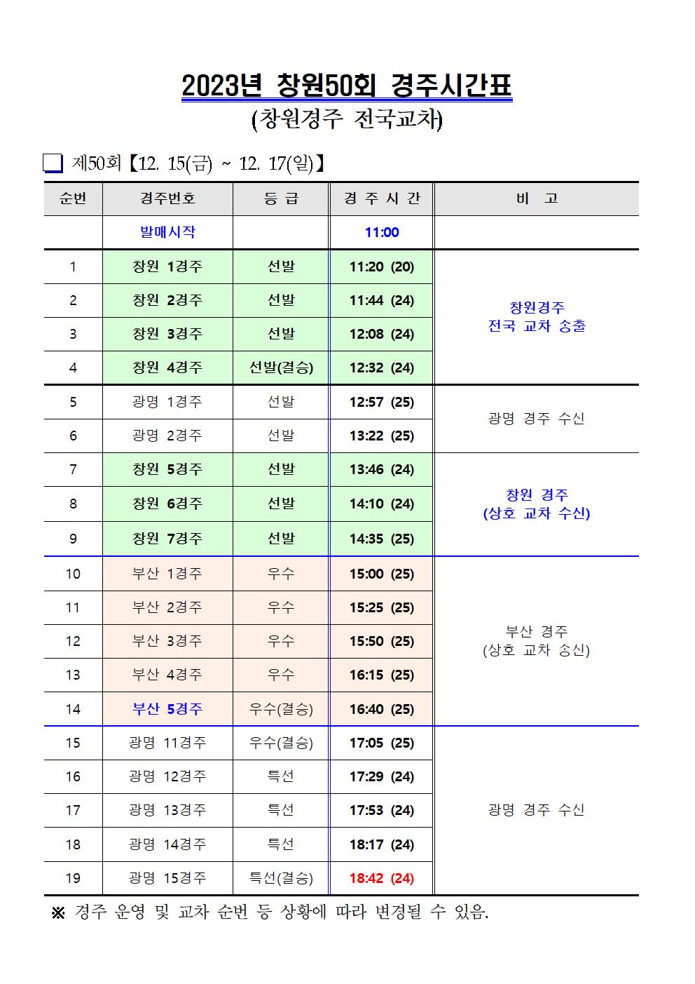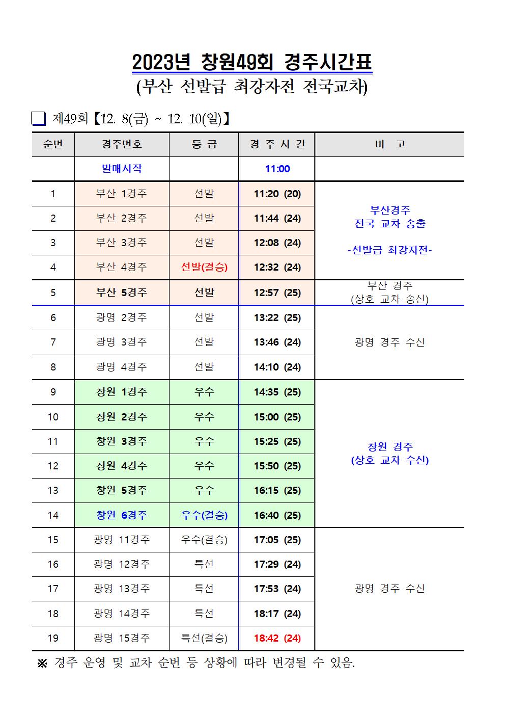 | 창원경륜 12월(49~50회) 경주시간표 안내 | |