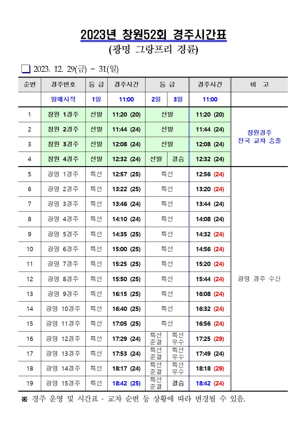 | 창원경륜 12월 (제51~52회) 경주시간표 안내 | |