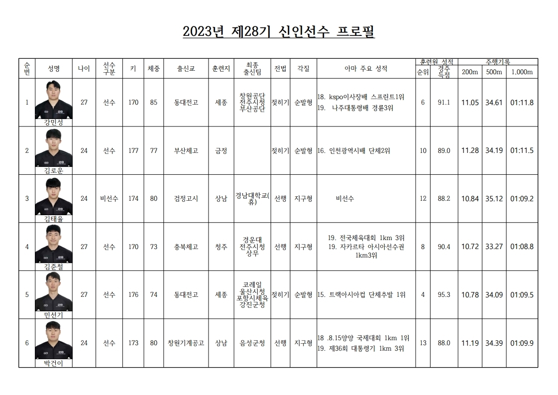 | 2023년 제28기 신인선수 프로필 안내 | |