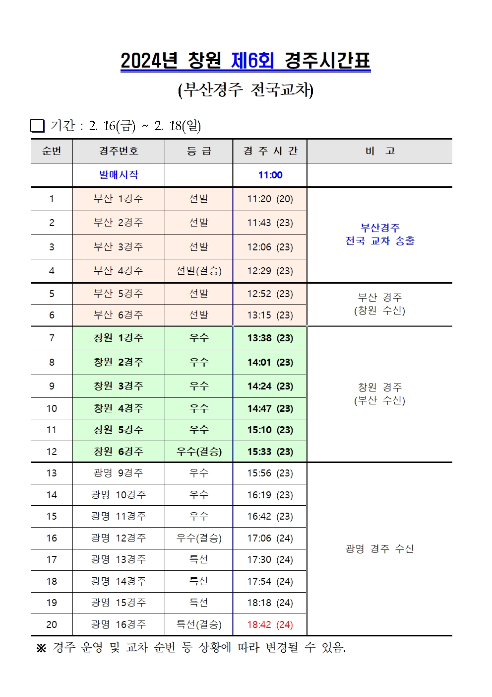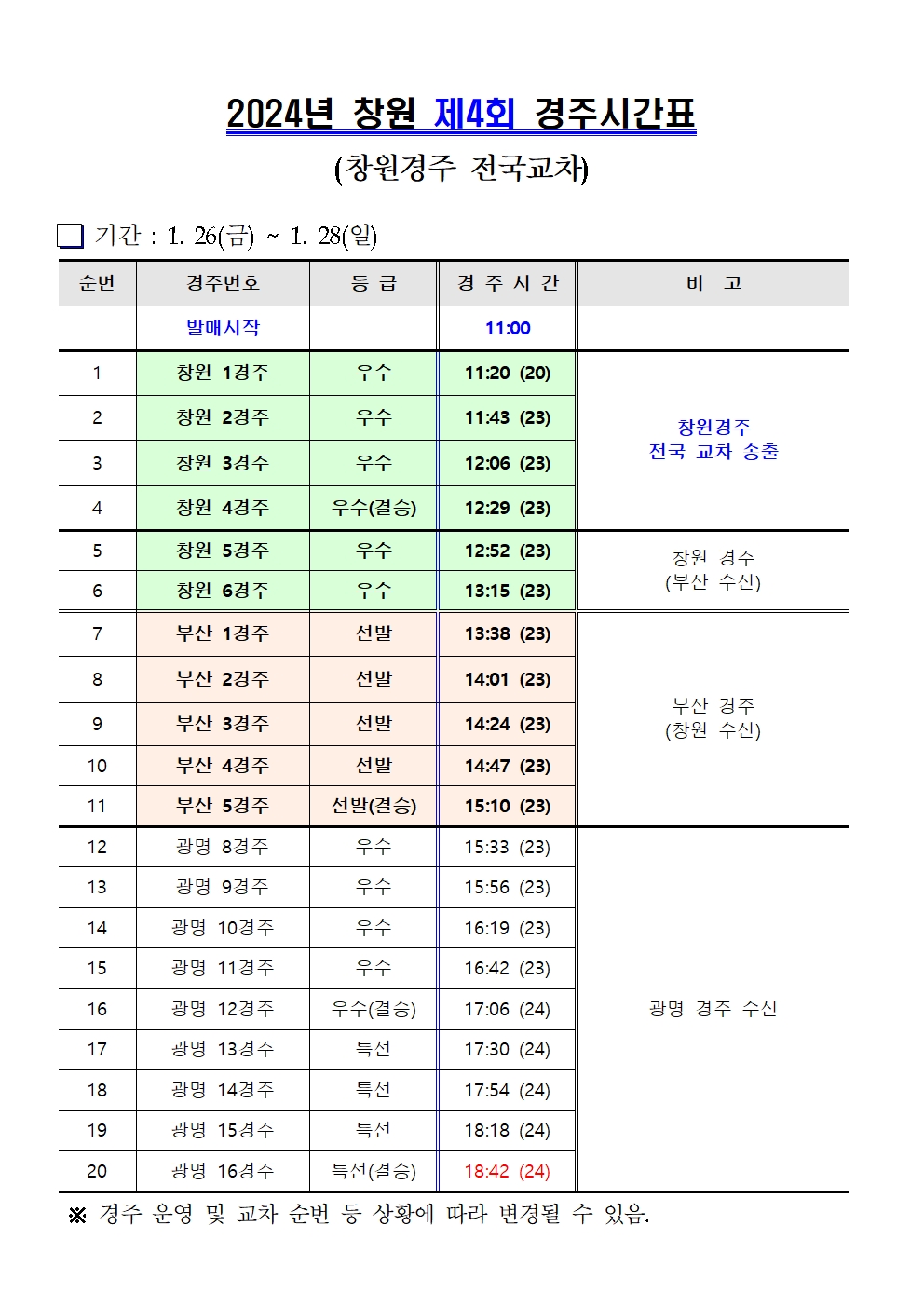 | 창원경륜 1~2월 (제4~7회) 경주시간표 안내 | |