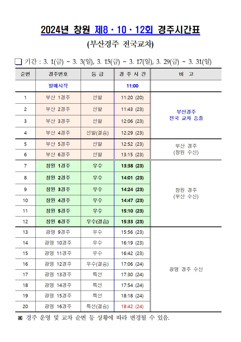 | 창원경륜 3월 (제8회 ~12회) 경주시간표 안내 | |