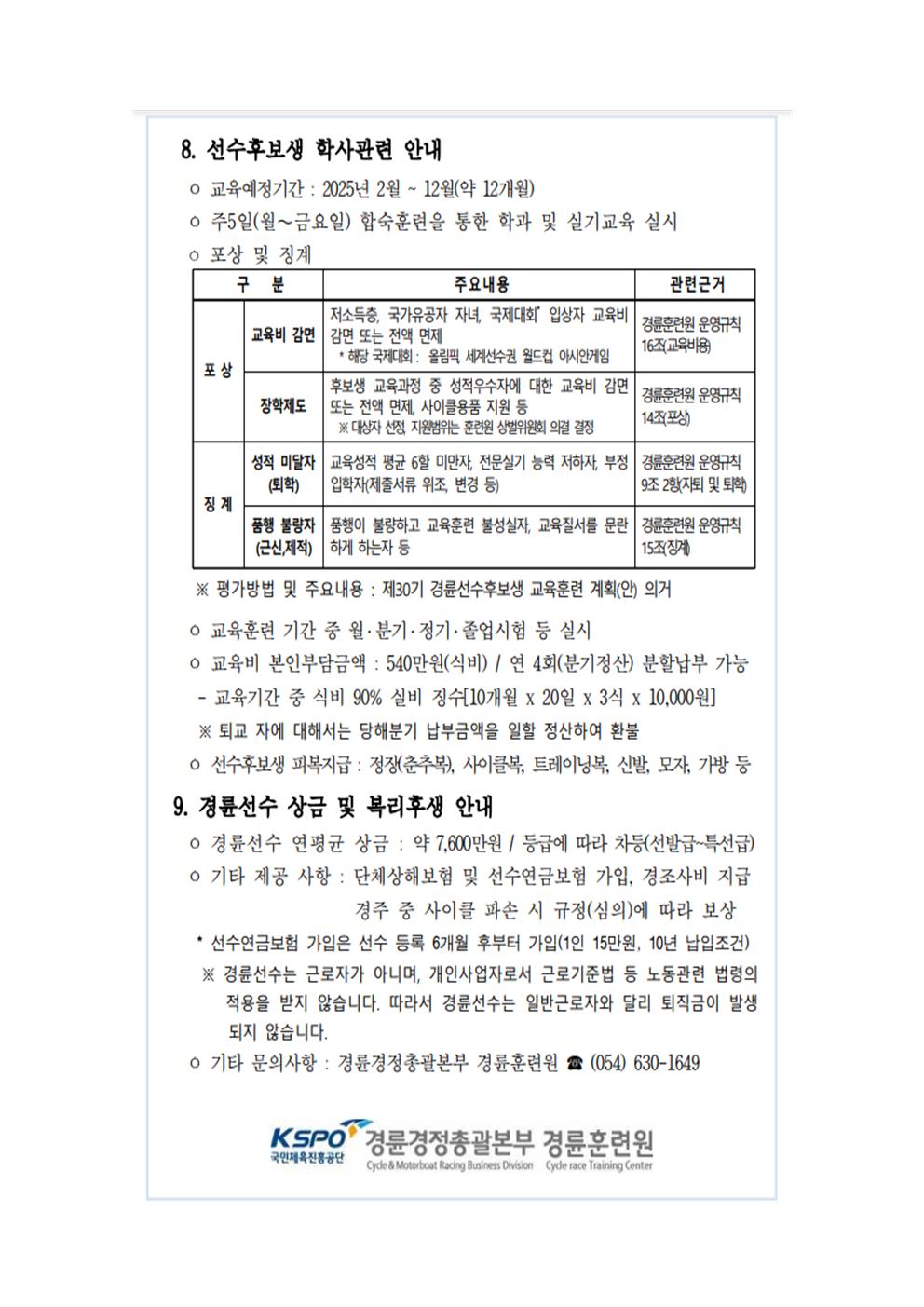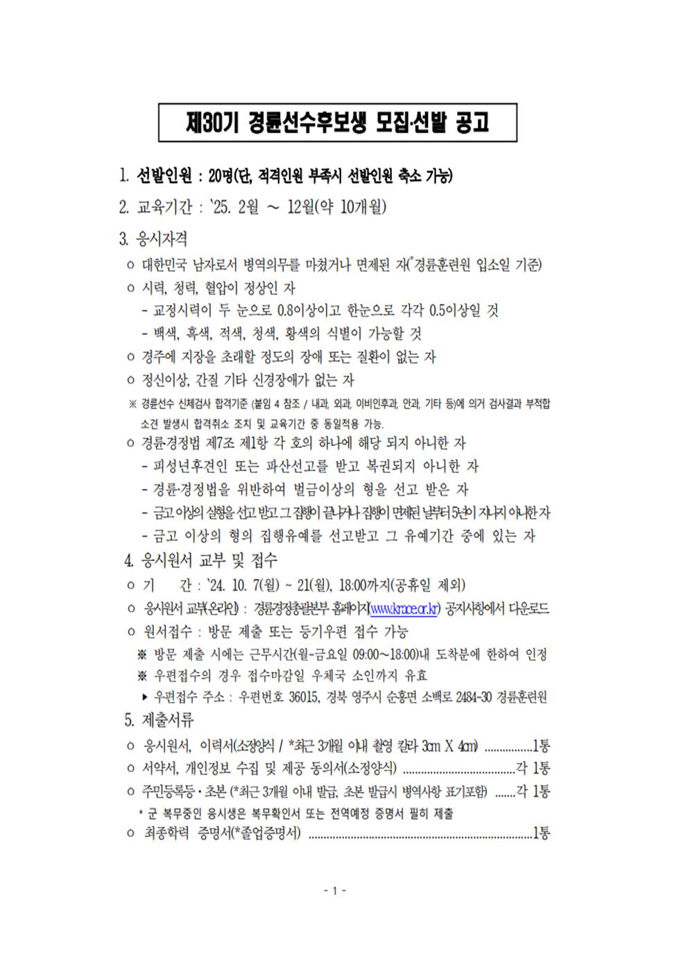 | 제30기 경륜선수후보생 모집 선발 공고문 | |
