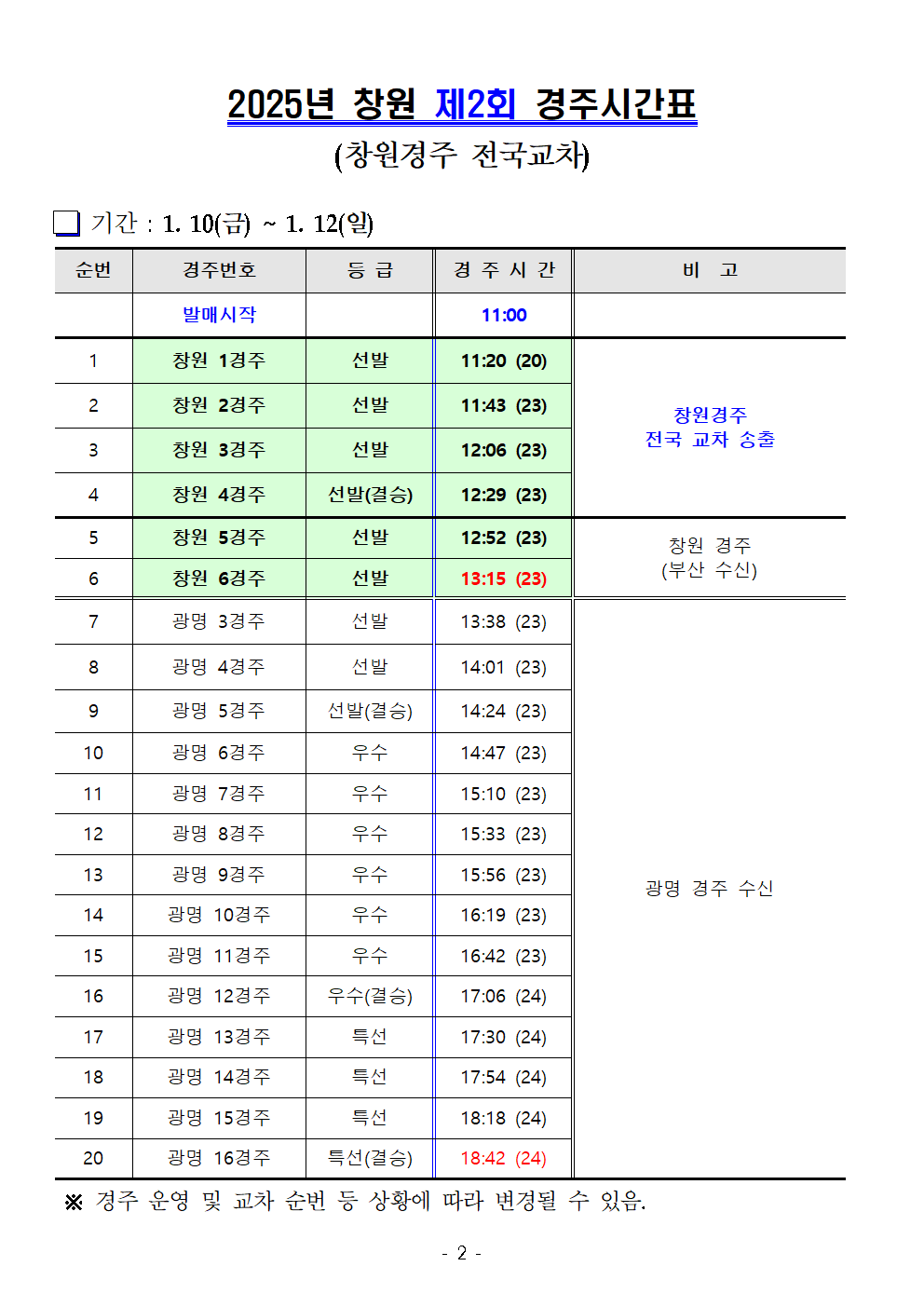 | 2025년 창원경륜 제 1~4회 경주시간표 | |