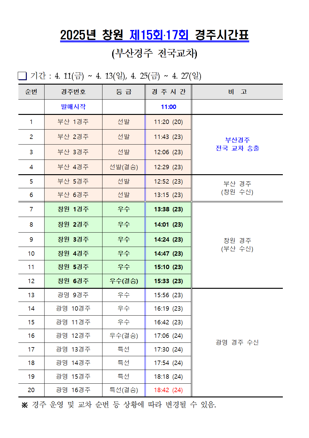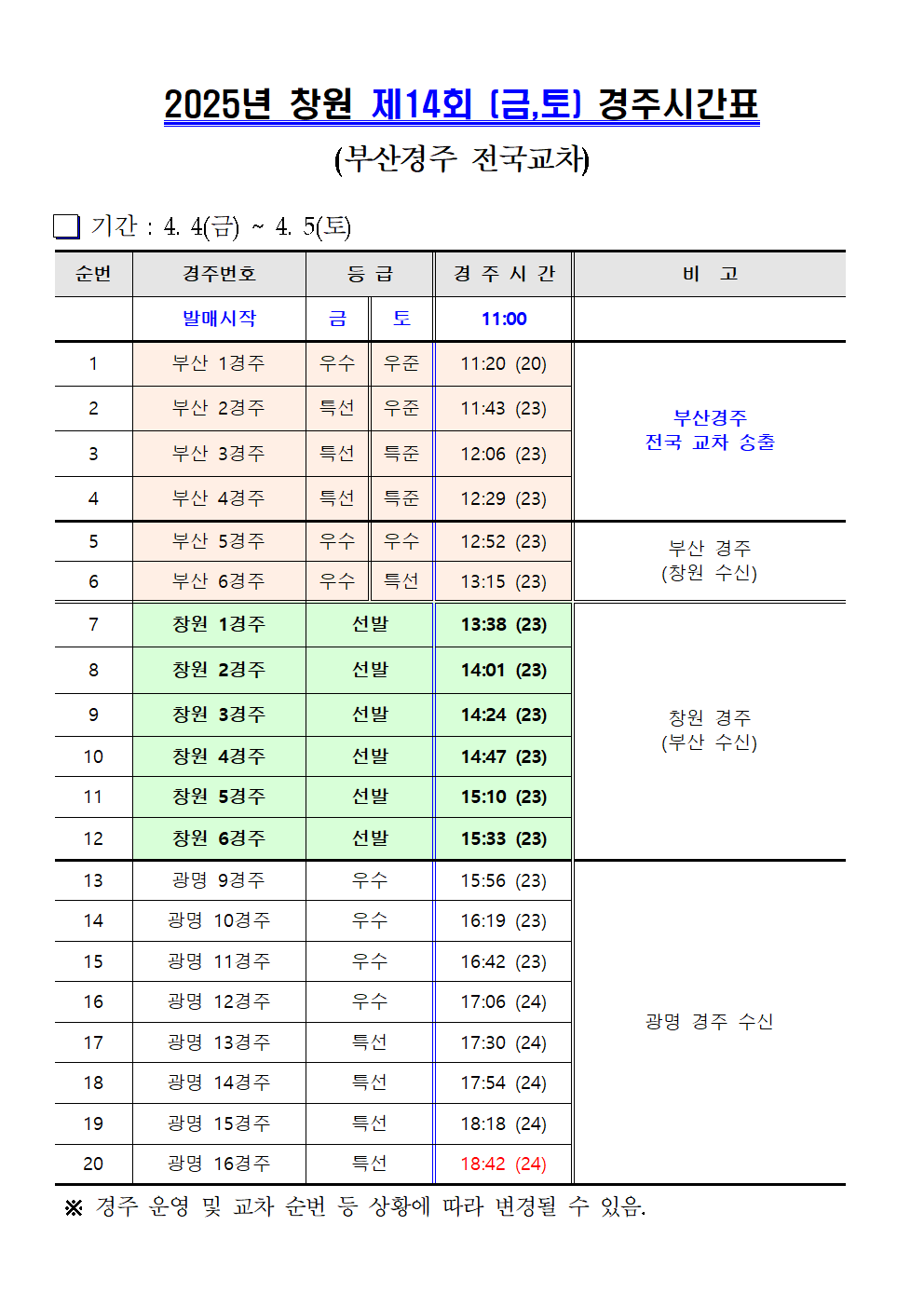 | 2025년 창원경륜 제 14~17회 경주시간표 | |